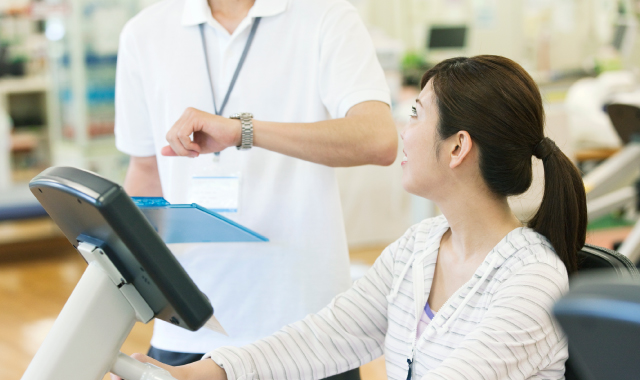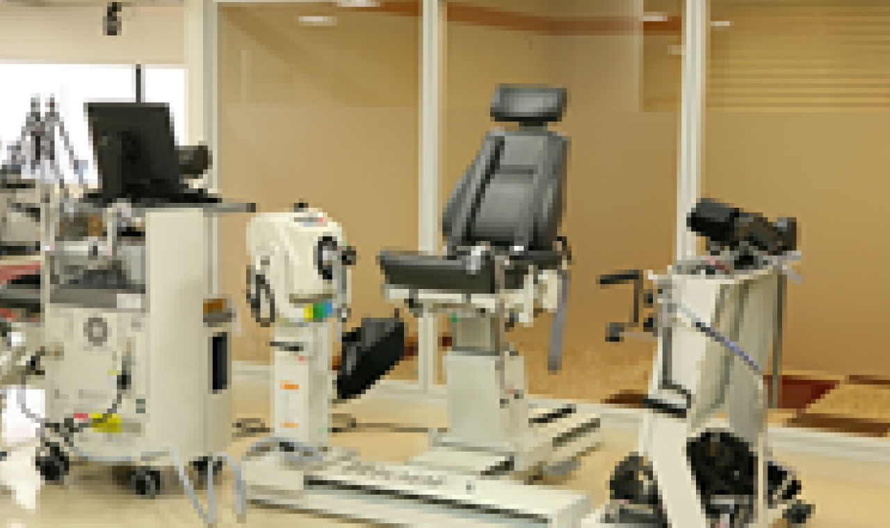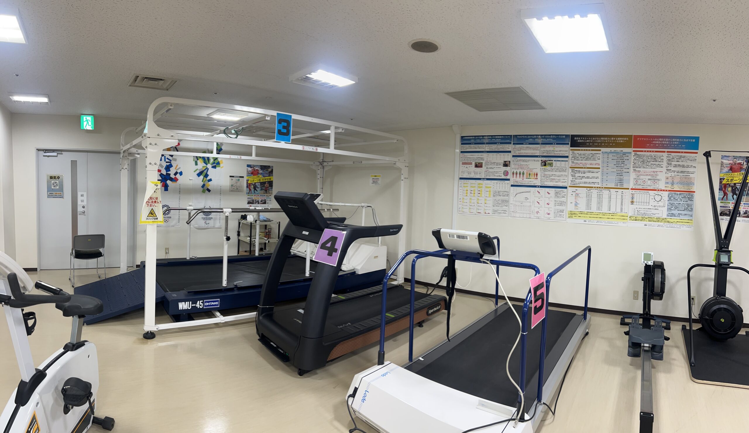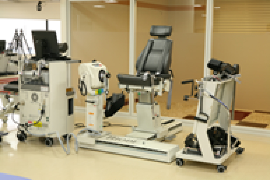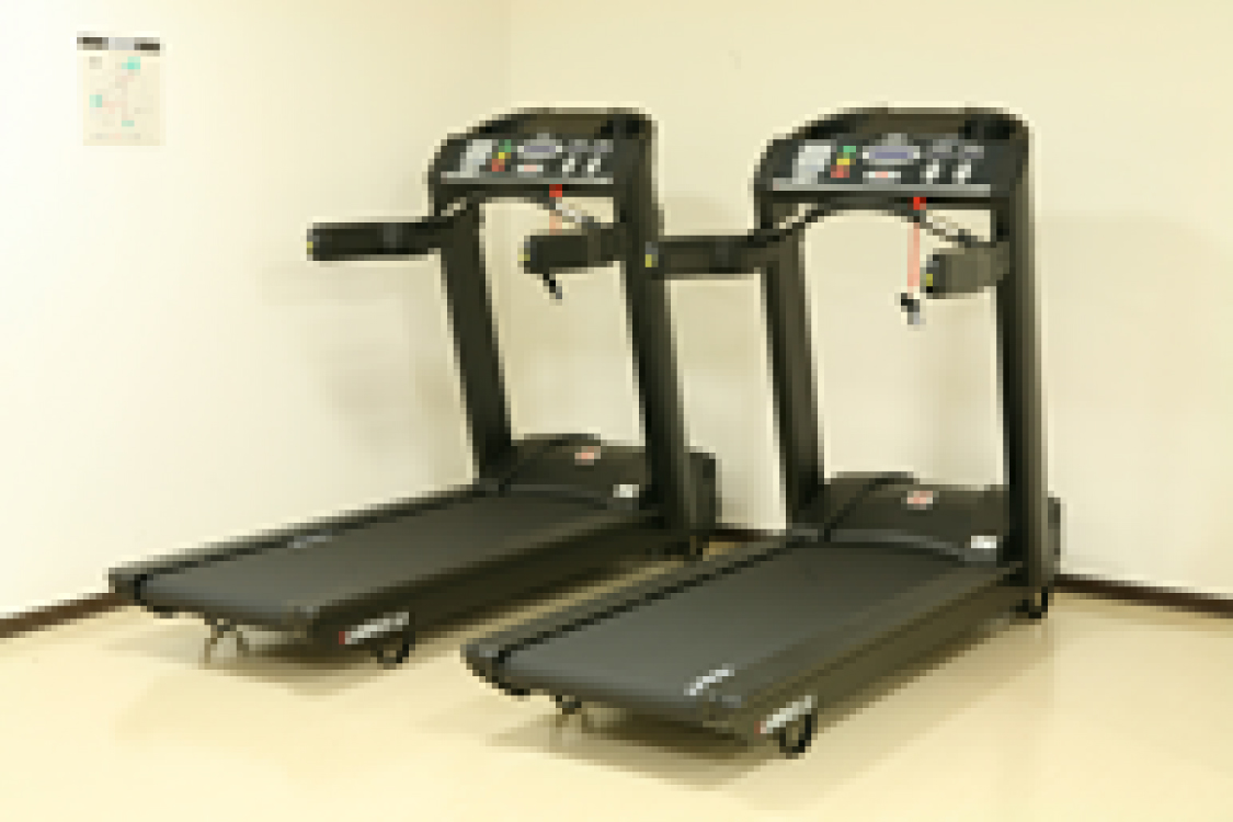 トレッドミル(ランニングマシーン)や自転車エルゴメーター、ローイングエルゴメーター(ボート漕ぎ)、スキーエルゴメーター等を設置しております。また、車椅子等でも利用可能な大型のトレッドミルや上肢用エルゴメーターも備えております。心肺機能を中心とした循環器系の強化・測定を行うことが可能です。