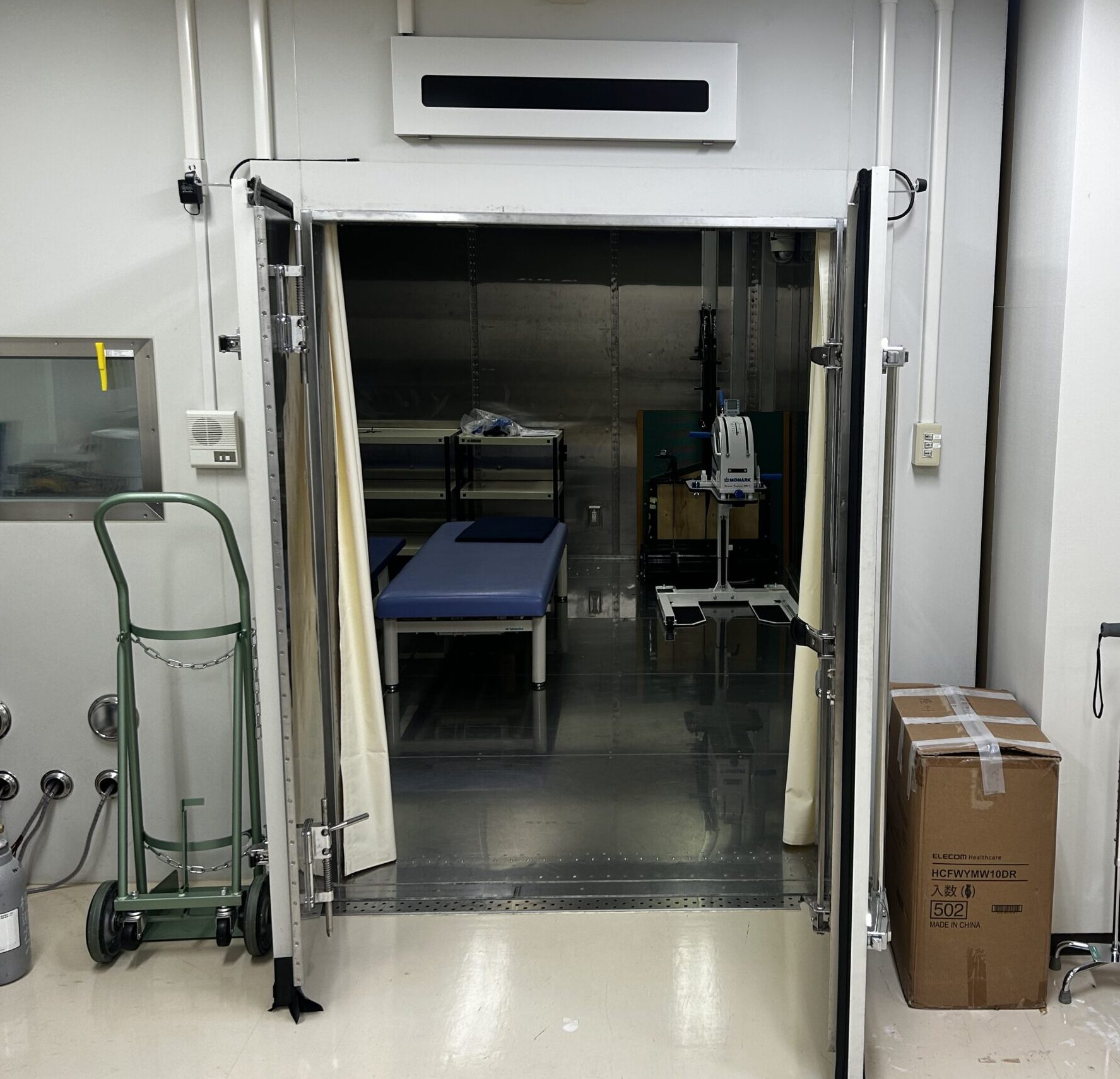 指定した気温・湿度を人工的に作り出すことの出来る、大型の人工気候室です。地球上の環境であれば、あらゆる場所の気温・湿度を再現できます。全国的にも稀少な設備で、スポーツ医学・美容(化粧品など)評価、温泉医学・医療の機能評価、機器の精度策定評価等に利用可能です。